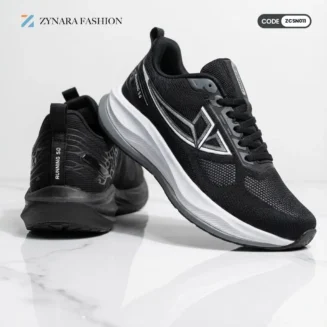 The Zynara AeroStrike Graphic Runner – ZCSN007 is built for speed, control, and visual impact. Designed with a sleek white upper and sharp black graphic detailing, this runner delivers a bold athletic look inspired by motion and energy. The lightweight construction allows effortless movement, while the cushioned midsole absorbs impact to keep every stride smooth and responsive.