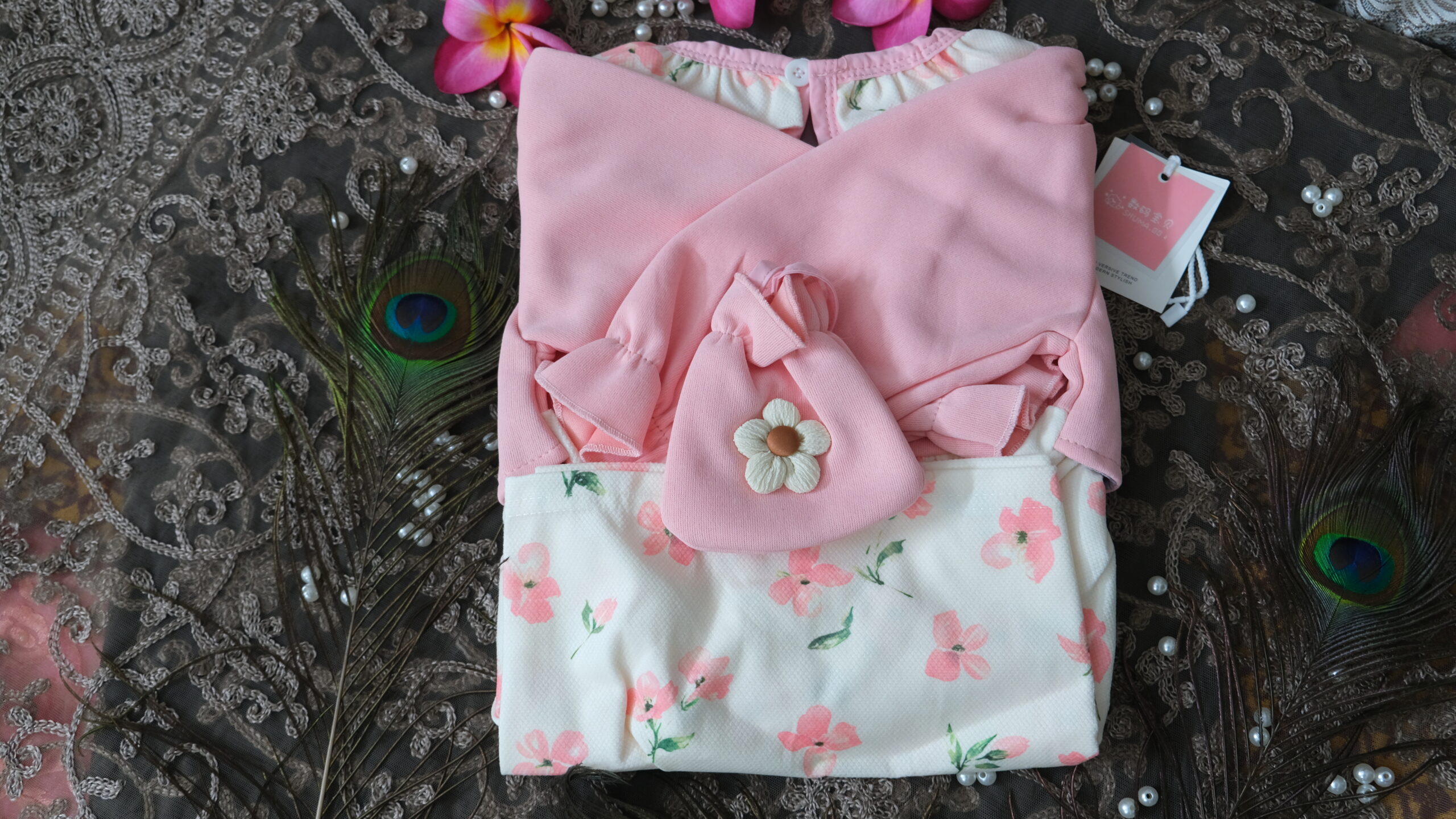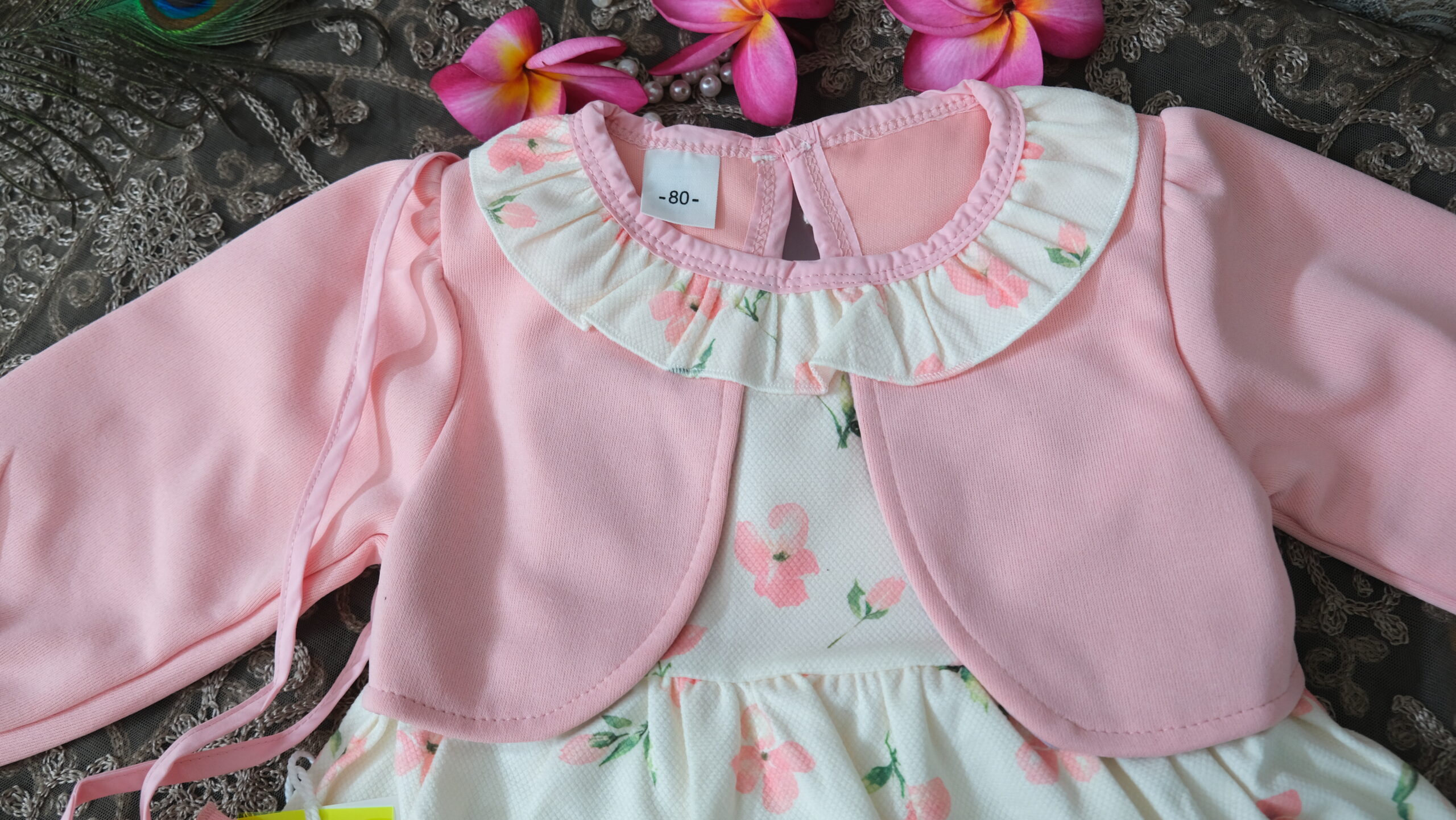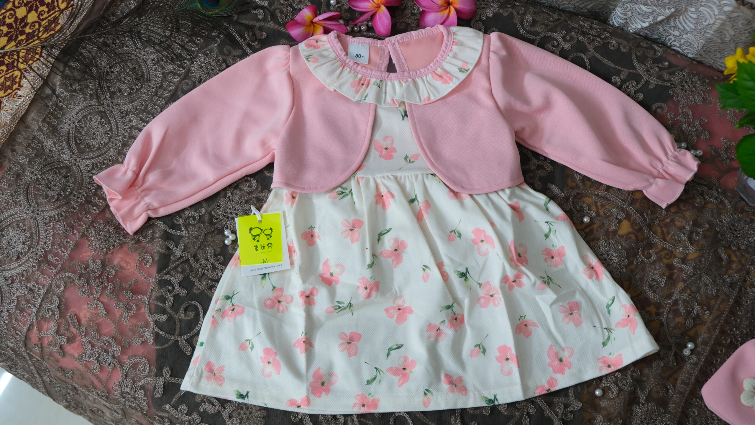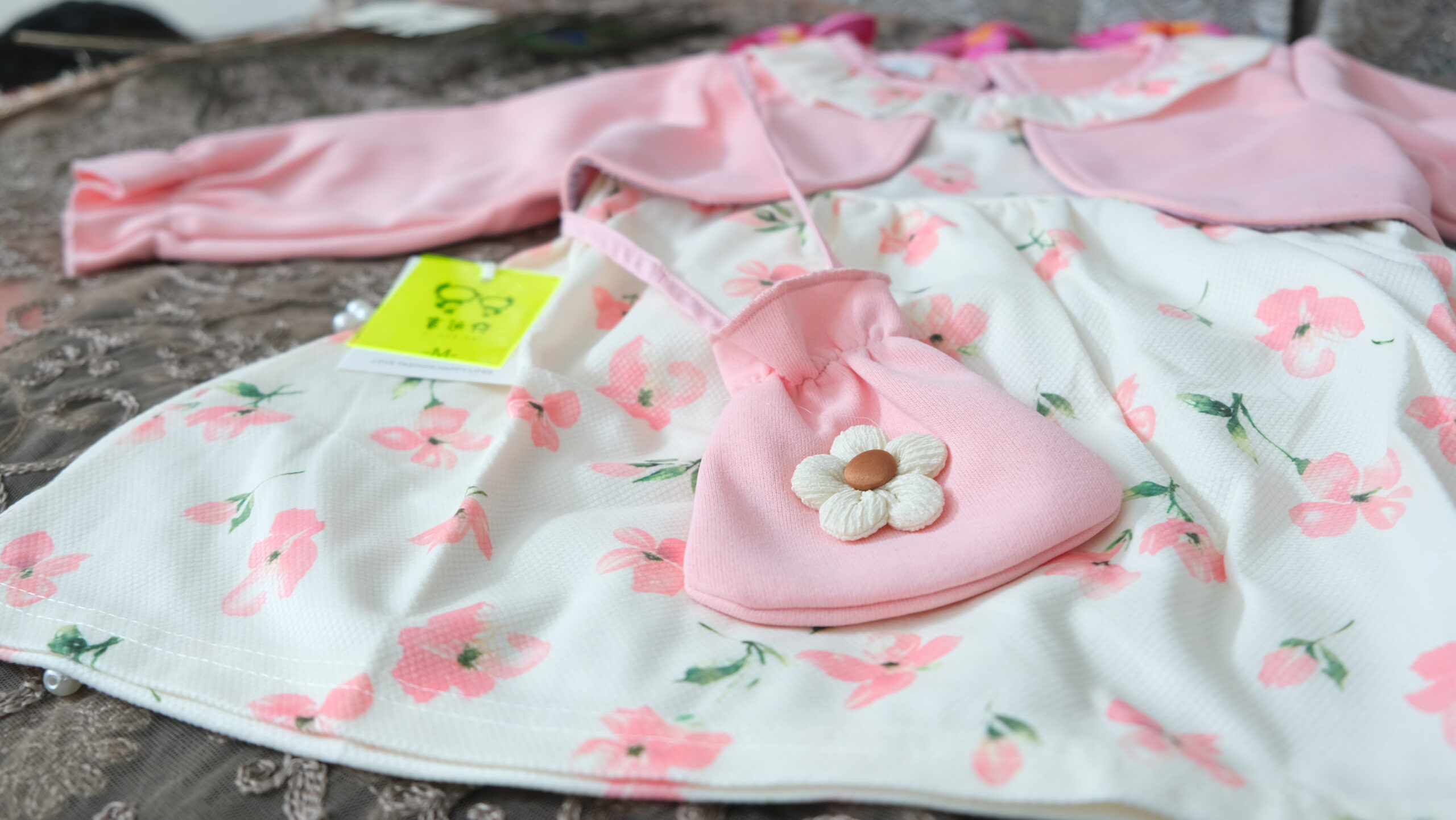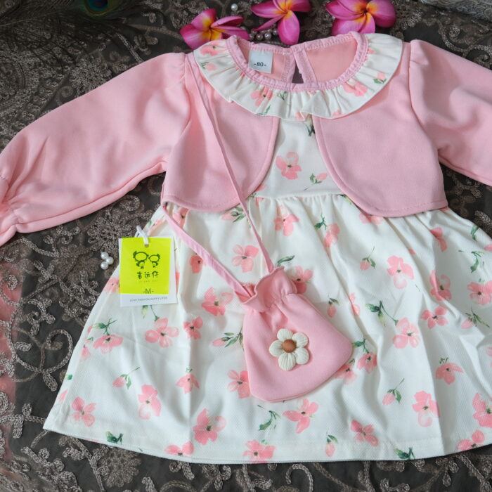 Crafted with a sweet floral pattern and a soft pastel finish, this adorable girls’ dress set brings together comfort, style, and a refined boutique feel.