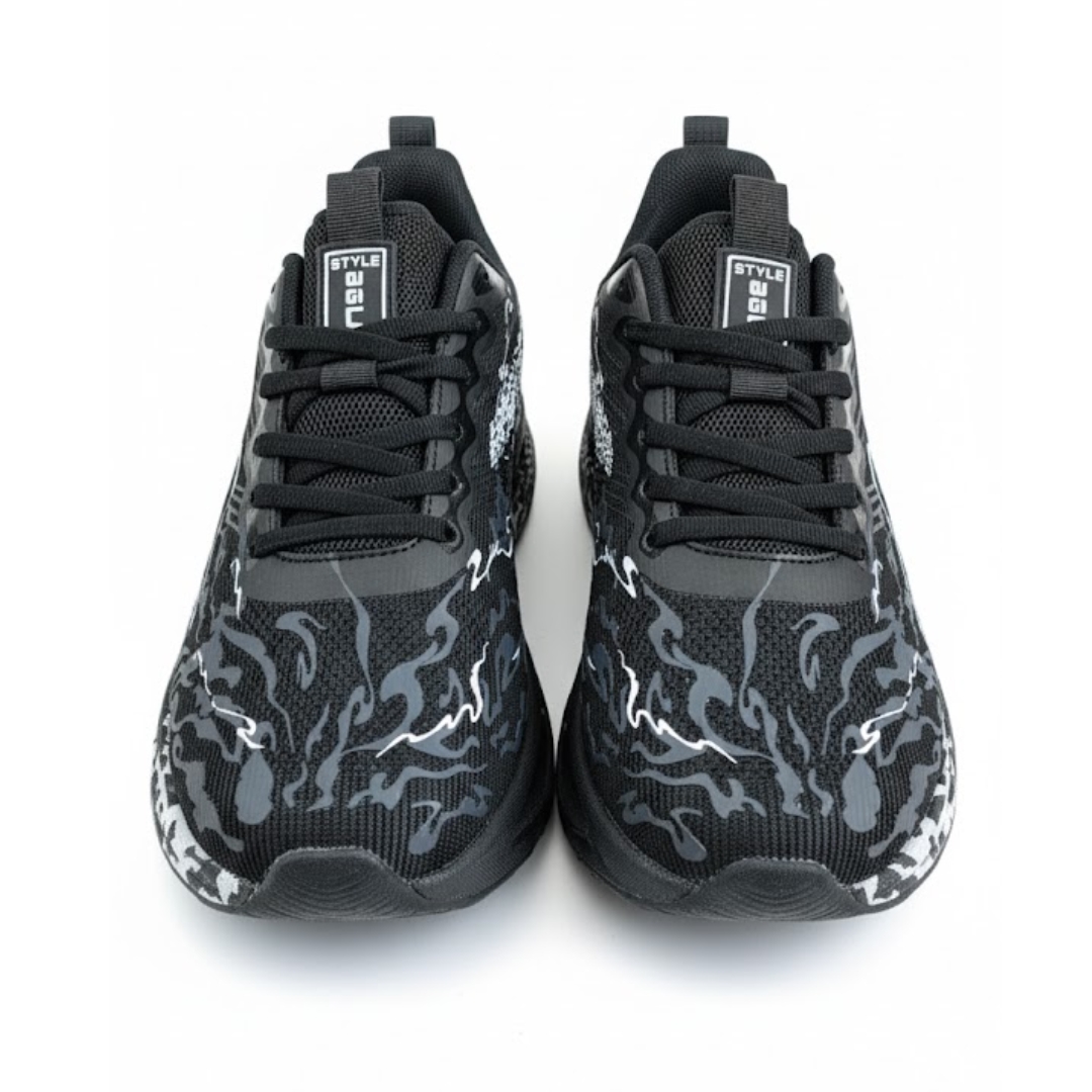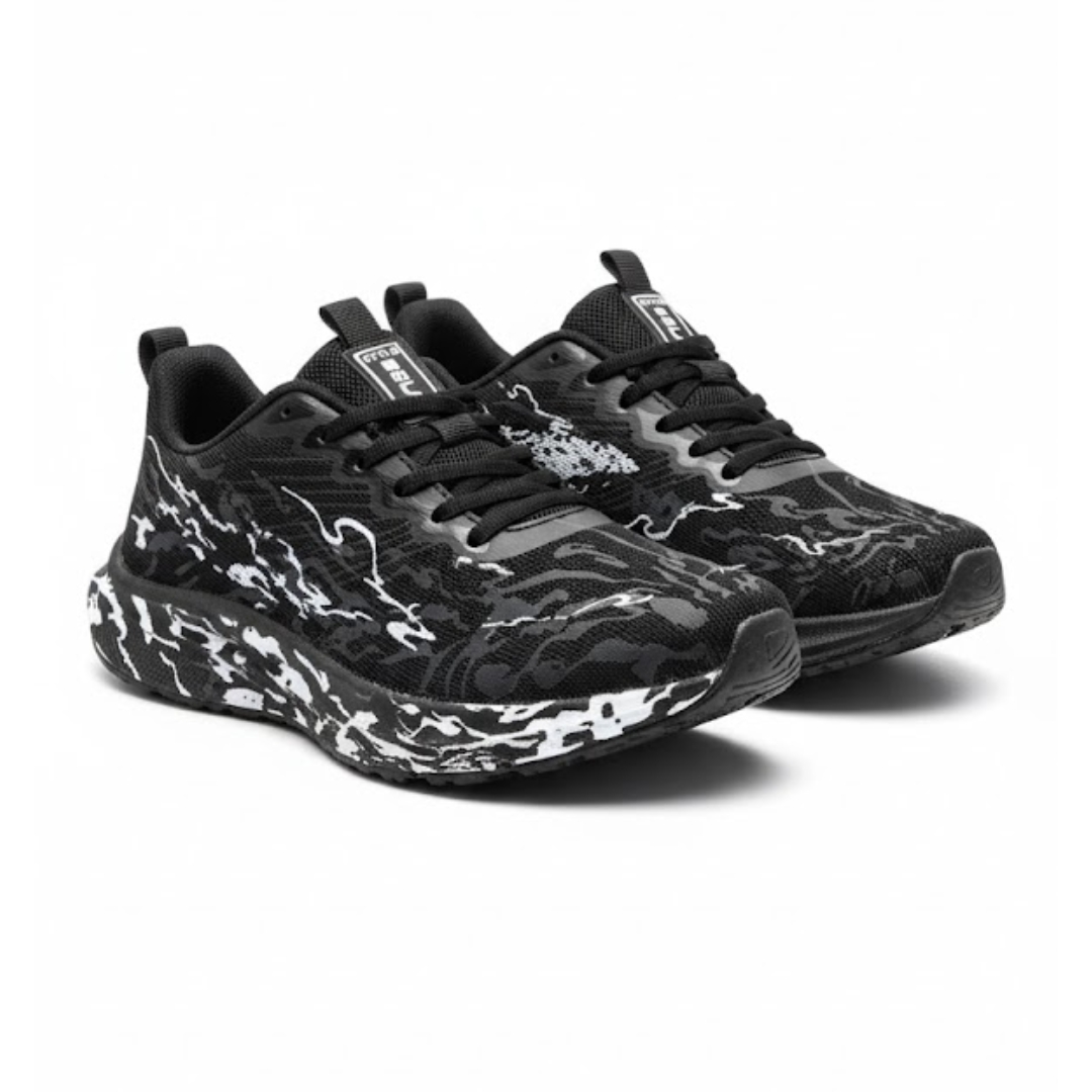 Men’s Black Running Shoes – Lightweight, Breathable & High-Cushion Sports Sneakers with Camo Graphic Sole | Urban Performance Shoe |CODE – ZCSN009