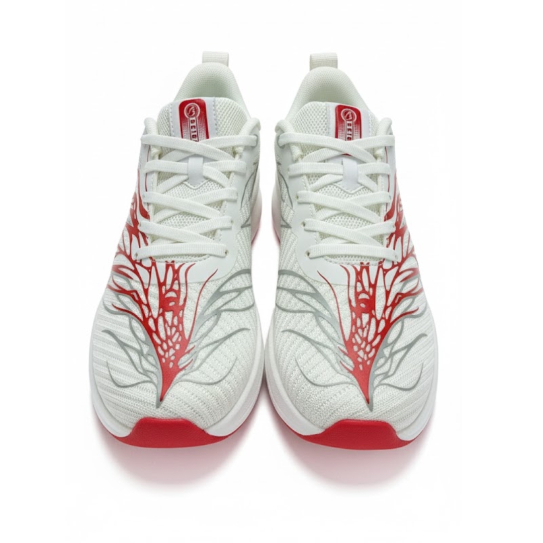 The Zynara FlameRush Runner – ZCSN008 is designed for runners who want speed, comfort, and standout style in one powerful package. Built on a clean white base with striking red flame-inspired graphics, this shoe delivers a dynamic look that reflects motion and energy.