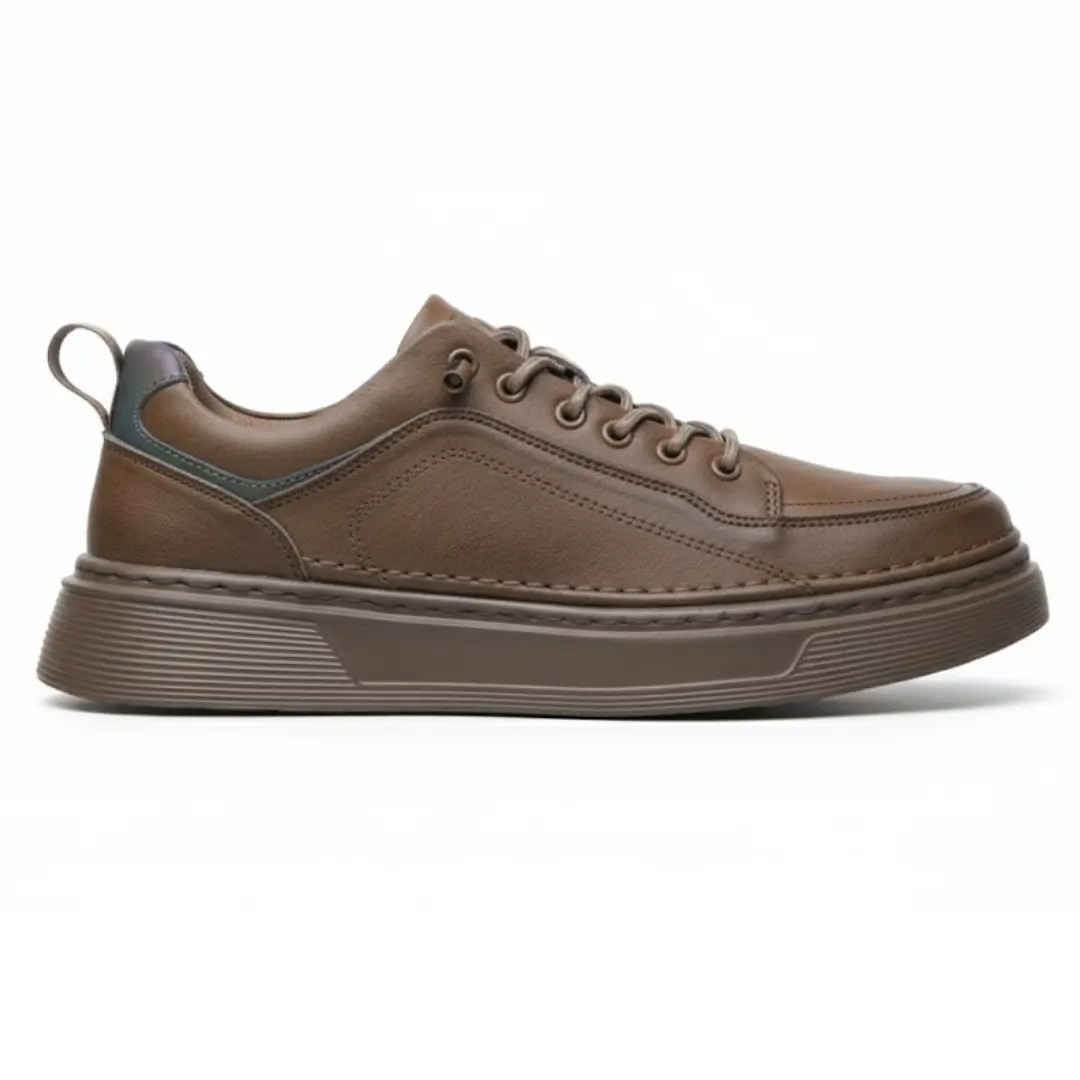Keywords: leather sneakers, casual leather shoes, brown sneaker men, premium comfort shoes, durable outdoor sneaker, men’s daily wear shoes