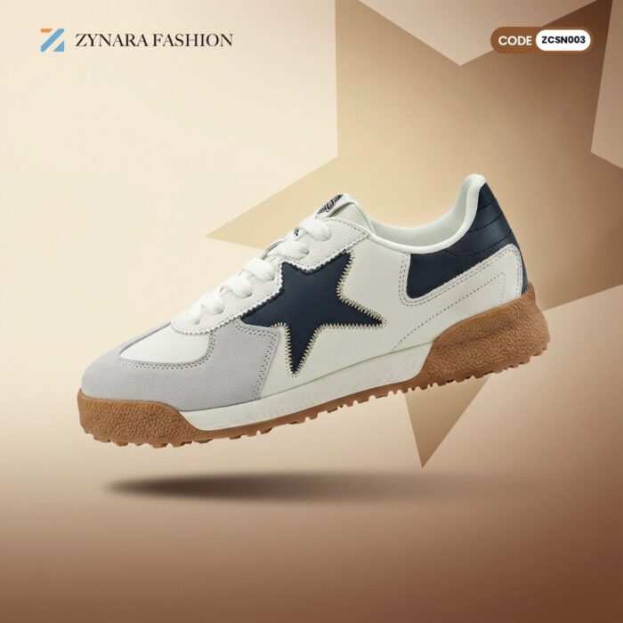 The Zynara Retro Star Classic – ZCSN003 brings back vintage flair with modern comfort. Designed with a clean off-white upper, navy star patch, and retro gum sole, this pair is the perfect balance of style and nostalgia. Lightweight, breathable, and comfortable for all-day wear, it blends effortlessly with denim, joggers, and everyday street outfits.