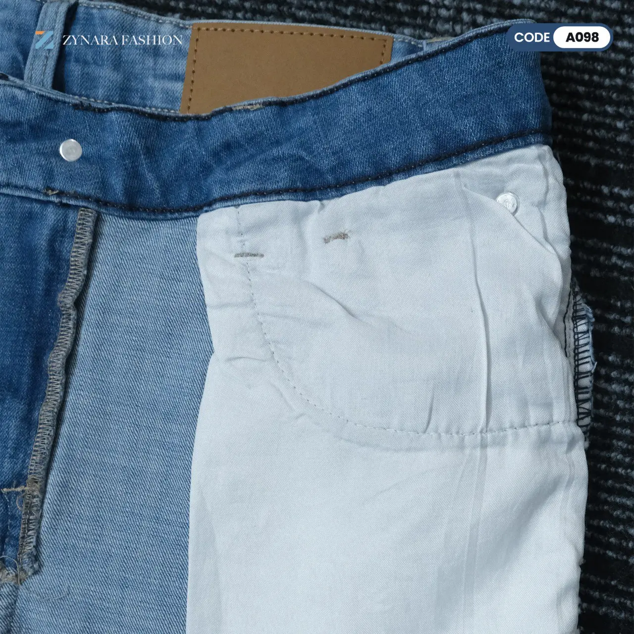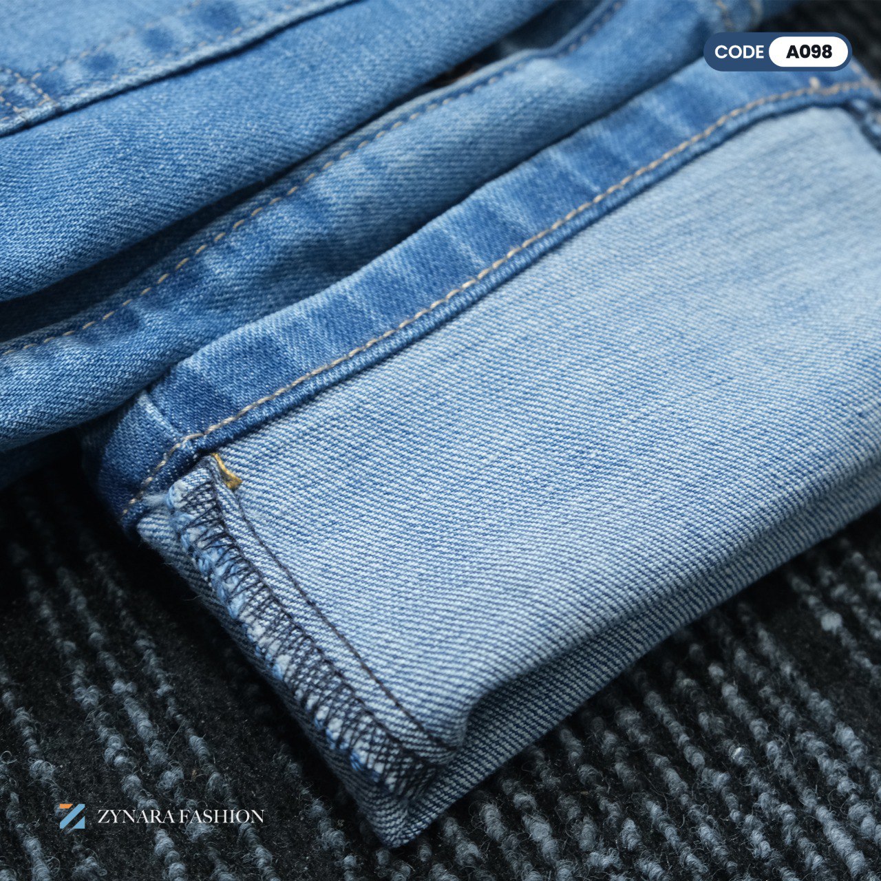 Zynara Fashion Premium Denim, Light Blue Slim Fit Jeans, Stretch Denim Pants 2025, Casual Denim for Men, Zynara Fashion A098, Luxury Casual Denim, Premium Men’s Fashion Jeans, Modern Street Style Denim.