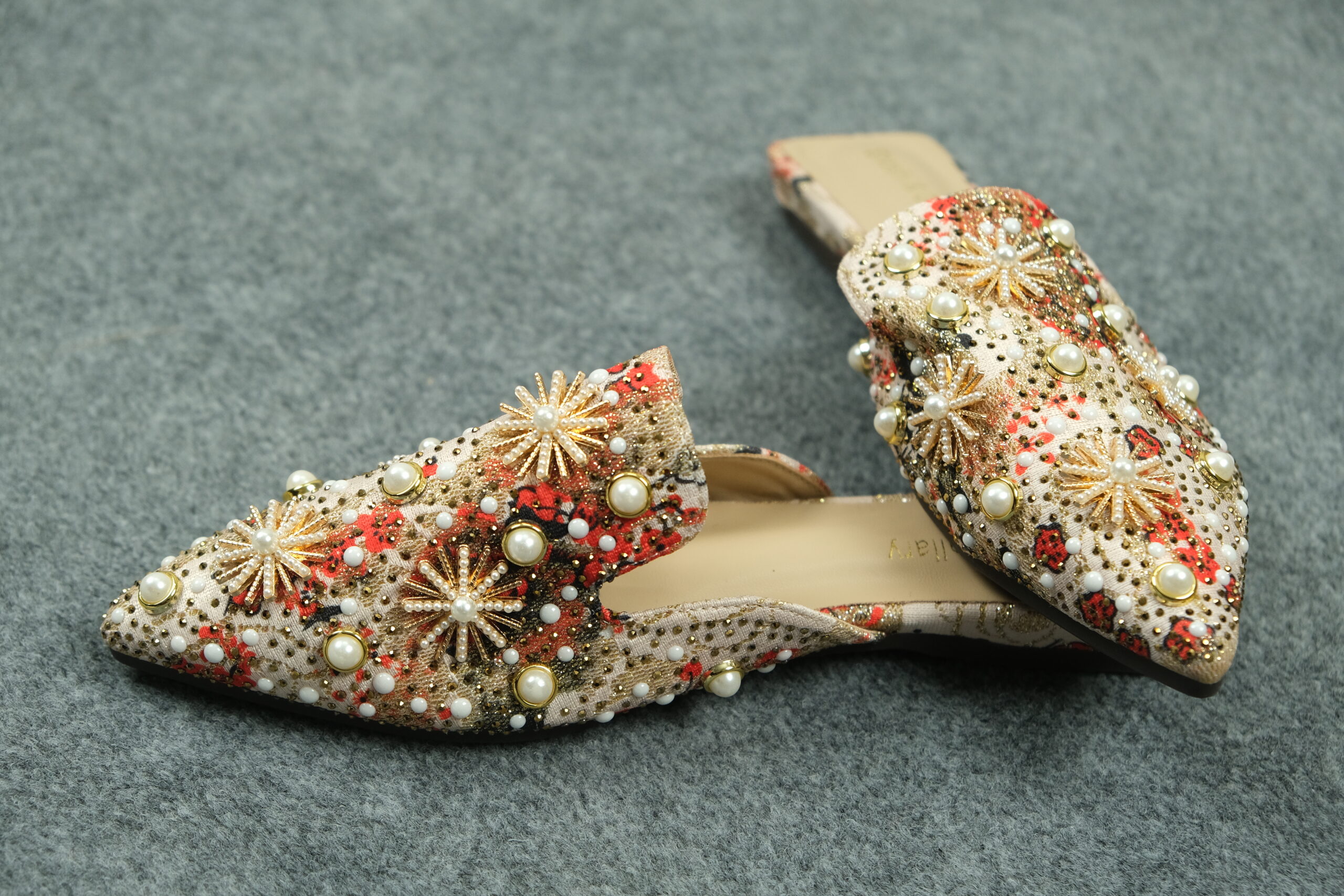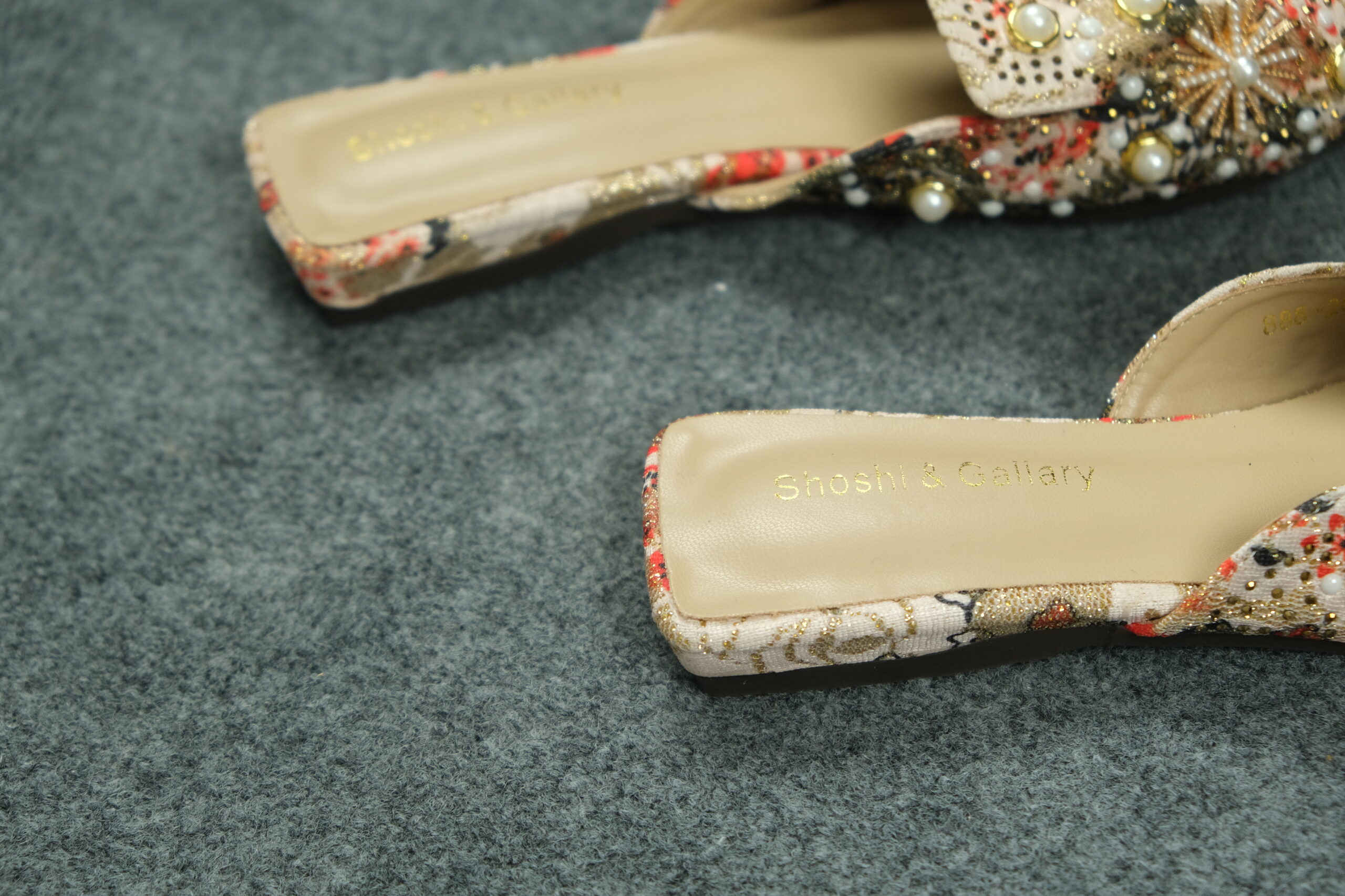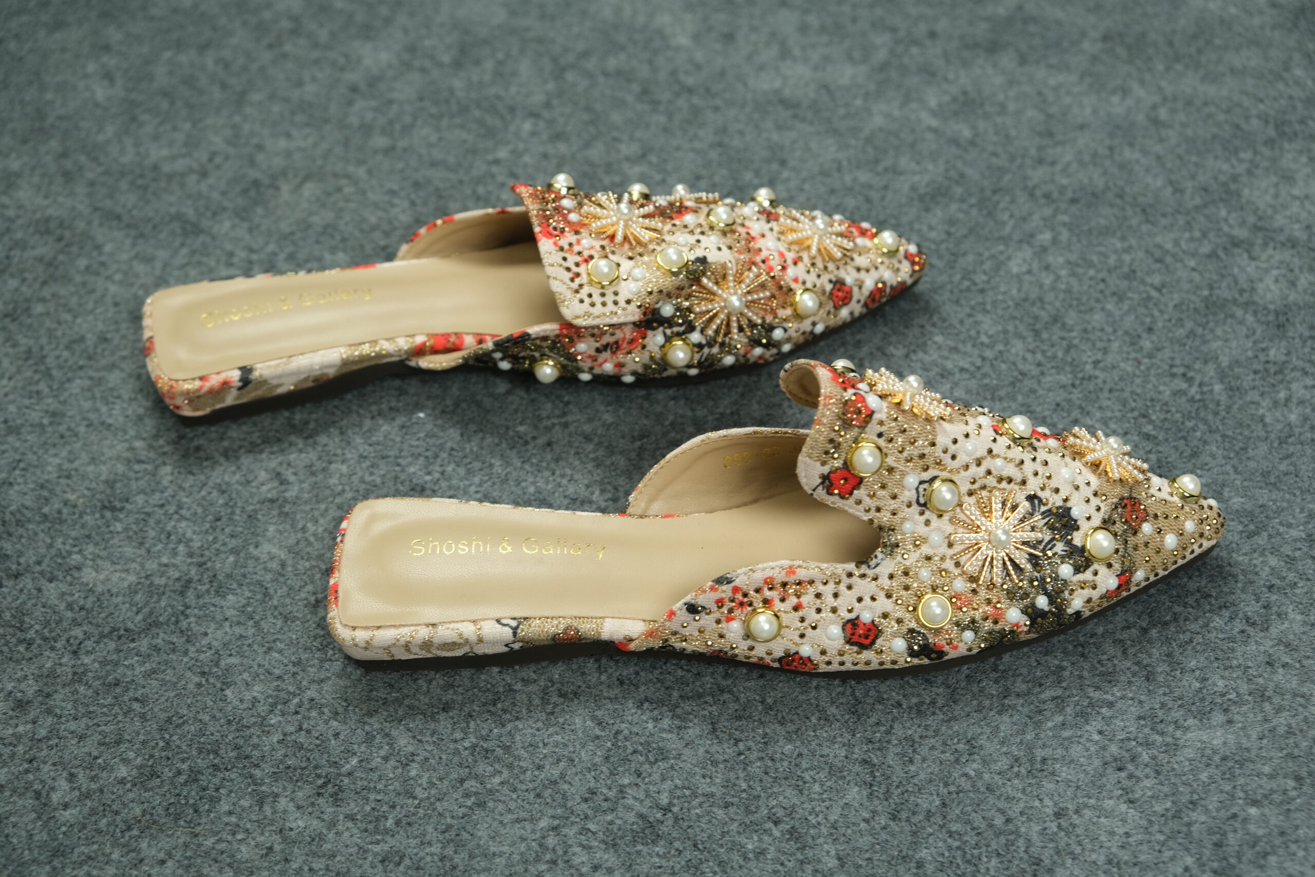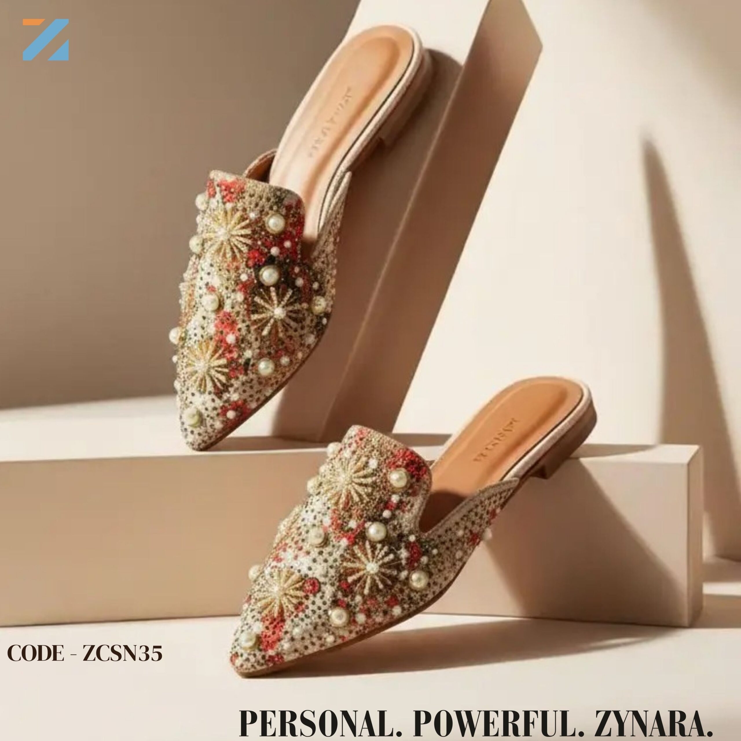 Zynara Pearl Embellished Printed Mule Loafers in Ivory Multi – Code ZCSN35